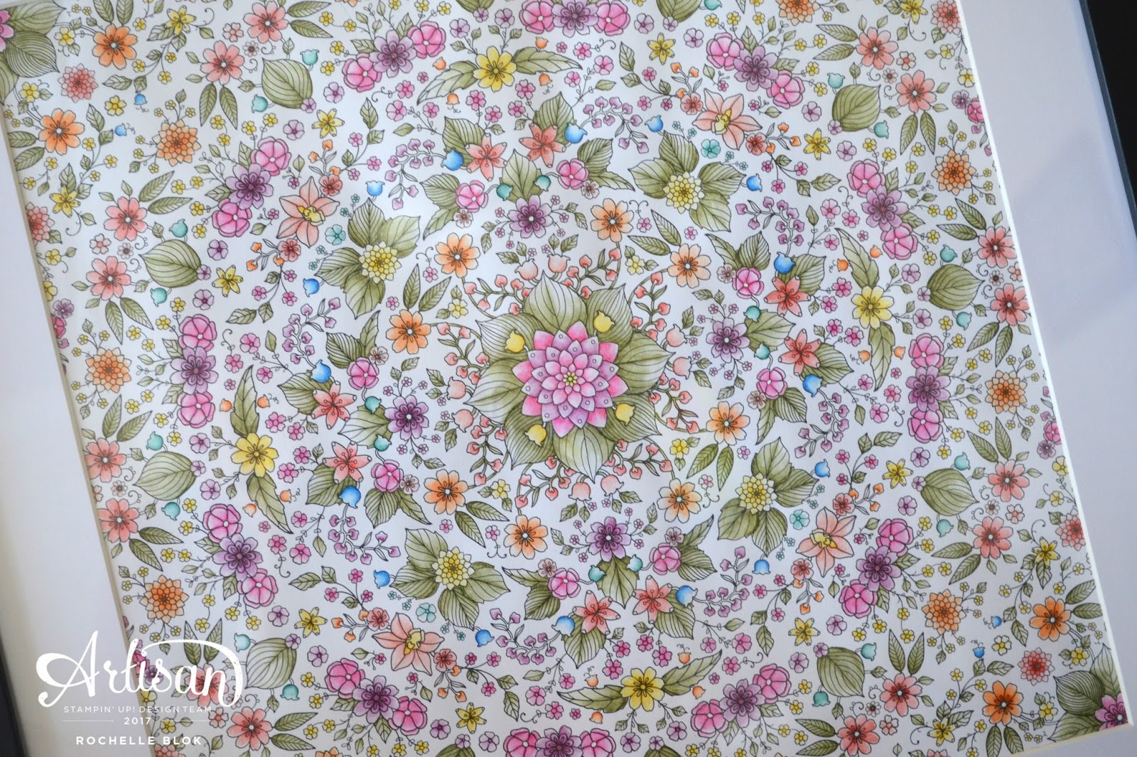 I had originally thought to cut out a section of the DSP and then turn it into a card but after all that work and effort that I put into colouring it in I couldn't bring myself to cut it up. It was just too pretty! I love the sheet of DSP in the beautiful dark frame. The contrast of the frame with the colours in the DSP is gorgeous and makes for a beautiful decor piece in your home.